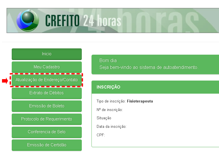 Ao acessar o sistema Crefito-9 24 horas, você terá acesso a diversas funcionalidades para atualizar seus dados cadastrais. As principais opções são: