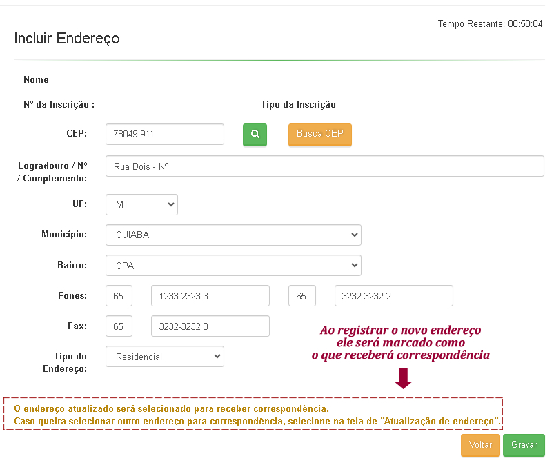 - Os formulários para “Incluir um novo endereço”, ou “Alterar um endereço existente” são semelhantes: