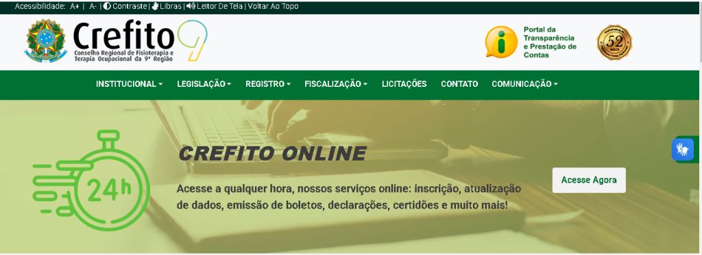 - Acesse o site do Crefito-9: https://crefito9.org.br