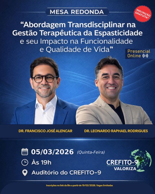 O CREFITO-9 realizará, no dia 05 de março de 2026 (quinta-feira), às 19h, uma mesa redonda com o tema: