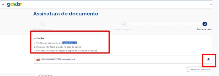 Para realizar a assinatura eletrônica, acesse o site Gov.BR.